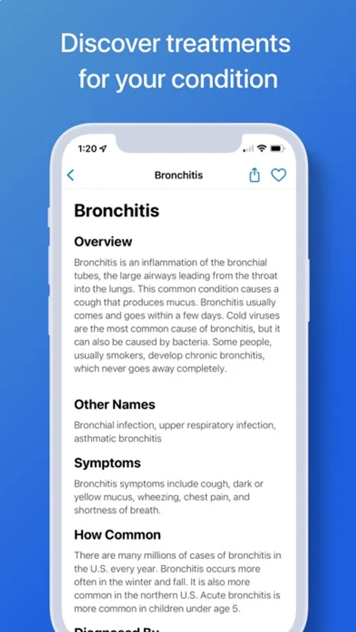 • Conditions – Find medically-reviewed information about conditions relevant to you and learn more about causes, treatments, and related symptoms.