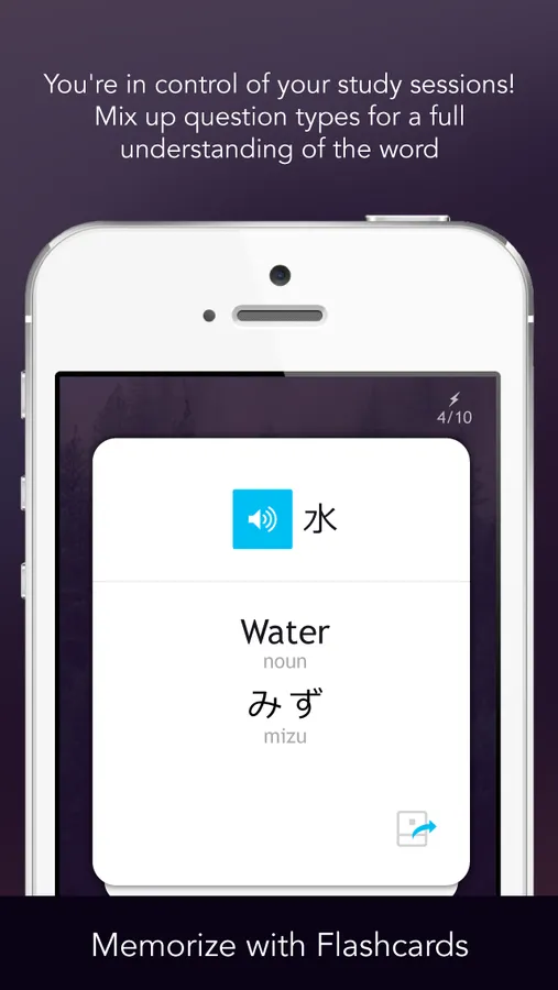 - Custom Flashcard Settings: You're in control of your study sessions. Mix up question types (recognition, production, audio and visual) for a full understanding of each word