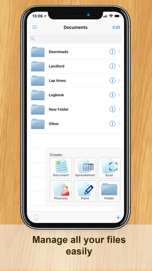 Introducing the iPhone's only light weight mobile office suite and file manager. This essential application allows you to edit and manage spreadsheet, text, and image files on your iPhone. Works both online and offline. You can transfer files between your iCloud, Google Docs and Dropbox accounts; and you can transfer files to your PC or Mac using USB and WiFi.