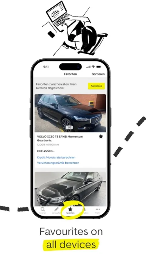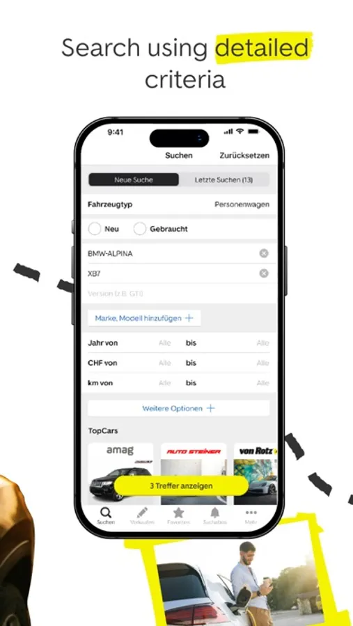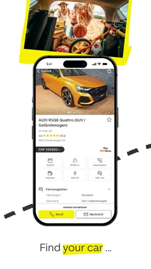 We at AutoScout24 offer you countless offers for the purchase and sale of your new or used car in Switzerland. From the affordable small car for the city to the spacious SUV for the family to the exclusive sports car, your every wish will be fulfilled. With more than 20 years of expertise, we make buying and selling cars and used cars fast and easy for you! You want to learn more? Then find the most important features of our app in detail here.