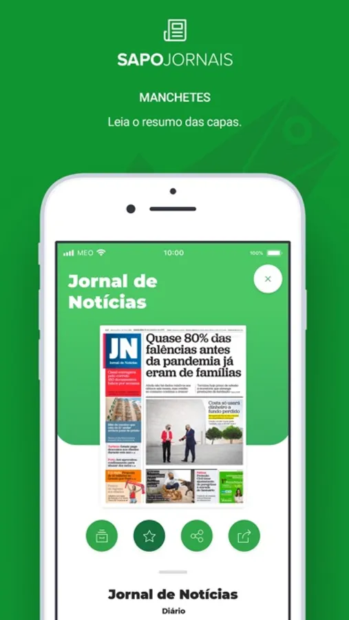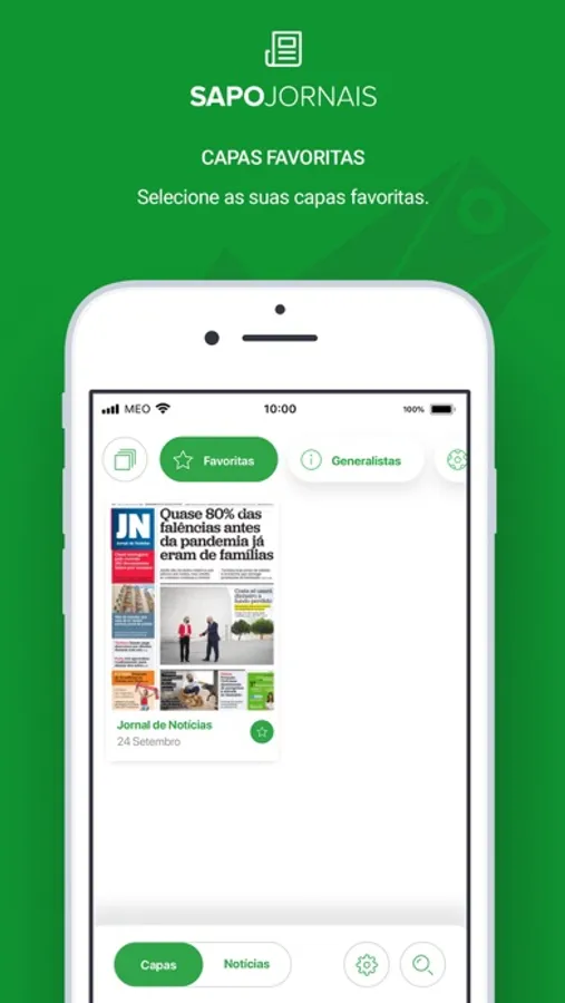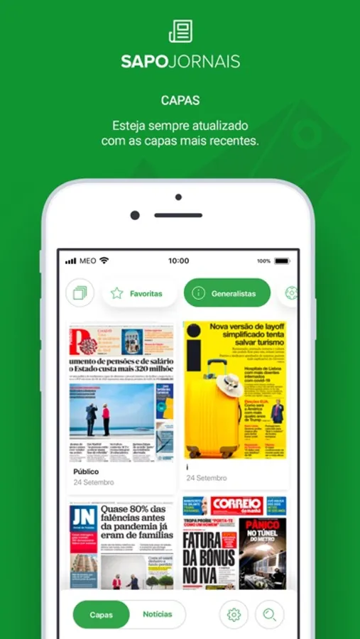Na aplicação SAPO Jornais poderá consultar diariamente as capas de jornais e revistas de toda a imprensa nacional e internacional que estão nas bancas.