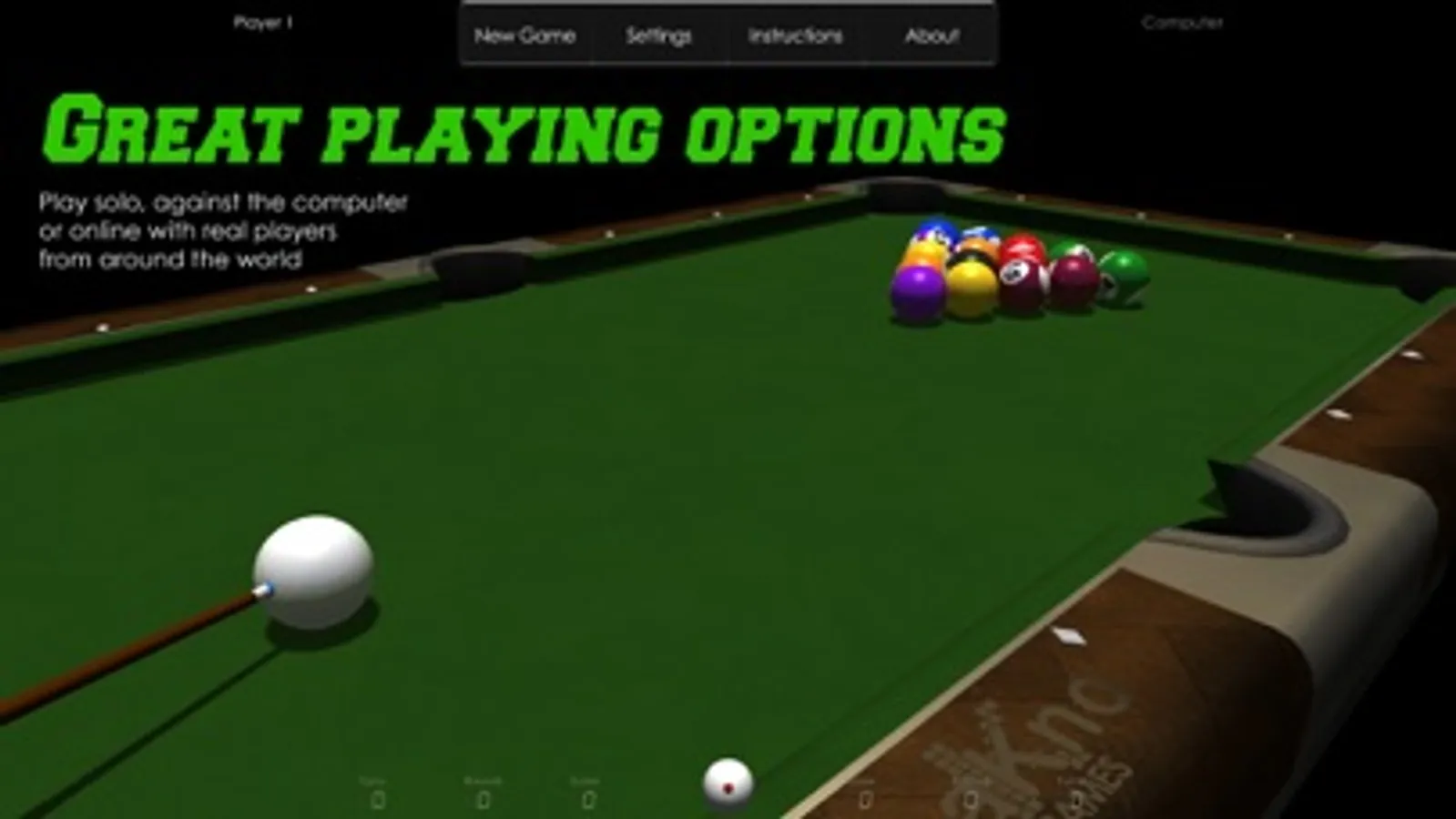 Fully featured 3D simulation, giving you spin control, real-life physics and graphics with rotating balls. Play solo, against the computer, or challenge another player on the same computer or online, to this life-like computer interpretation of your favorite game.
