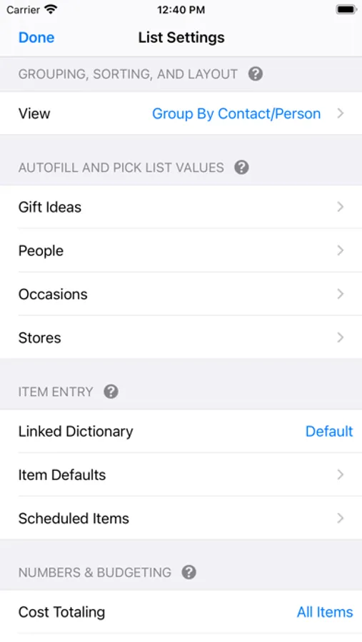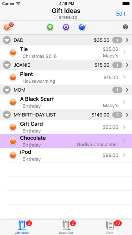 Gift List Budget Shopper lets you see what you're spending on who and what year round.