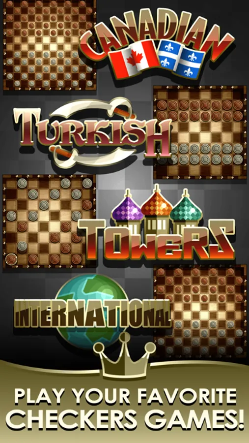 • 5 game modes: American Checkers, International, Canadian, Towers and Turkish Draught!
