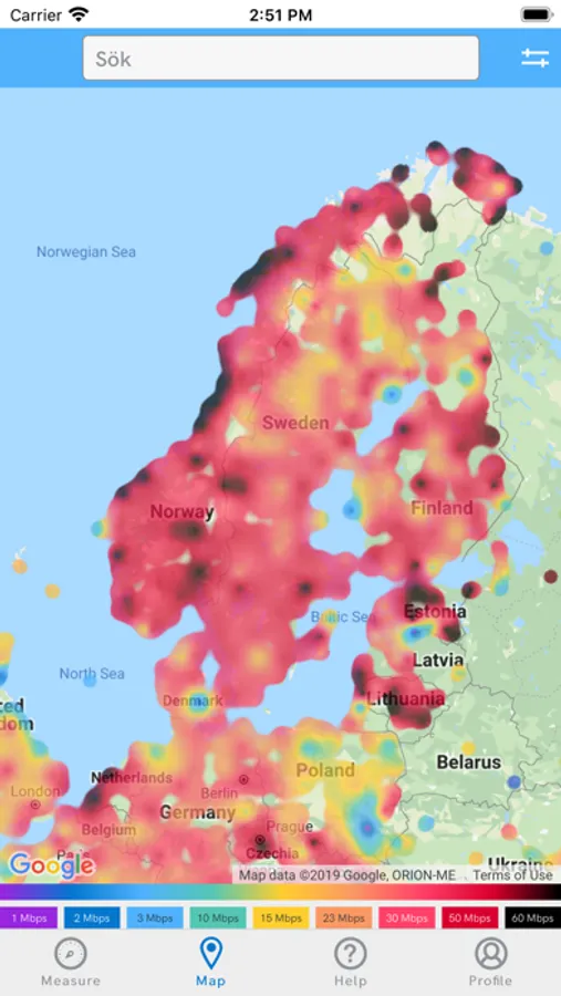 When measuring your mobile internet speed, you have a choice to share the position where the measurement was done. Bredbandskollen collects the position and displays it in a speed map for users to take part of. You can at any time change your settings in your phone to disallow sharing of your position.