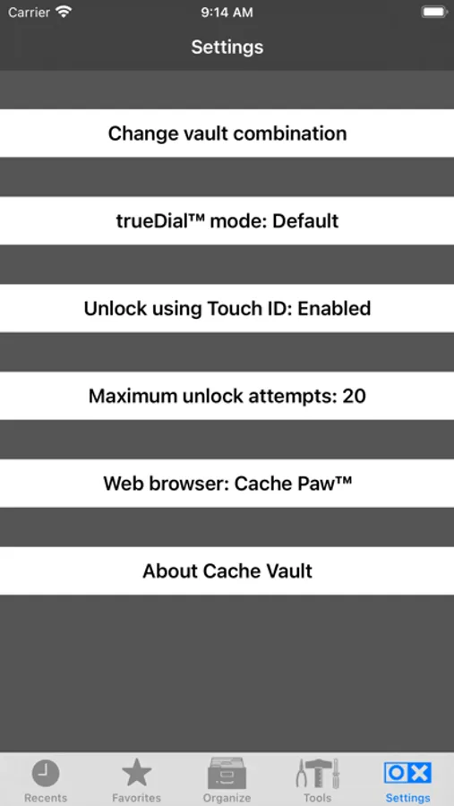 Cache Vault features the trueDial secure interface for fun and easy passcode entry or use Touch ID/Face ID to unlock the vault!
