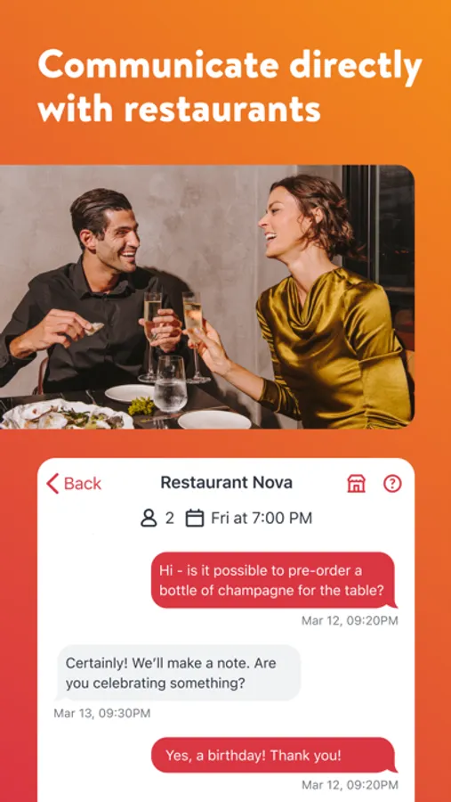 Streamline your booking experience with new features such as direct messaging with restaurants and hot table alerts
