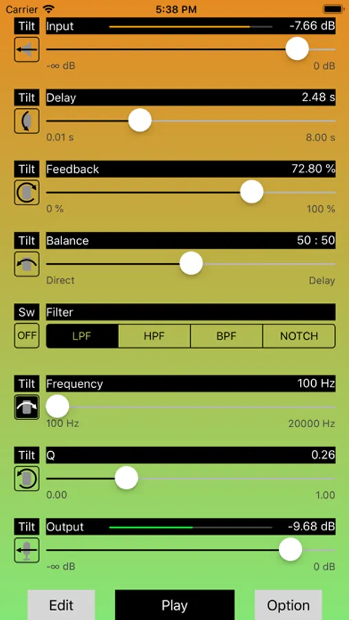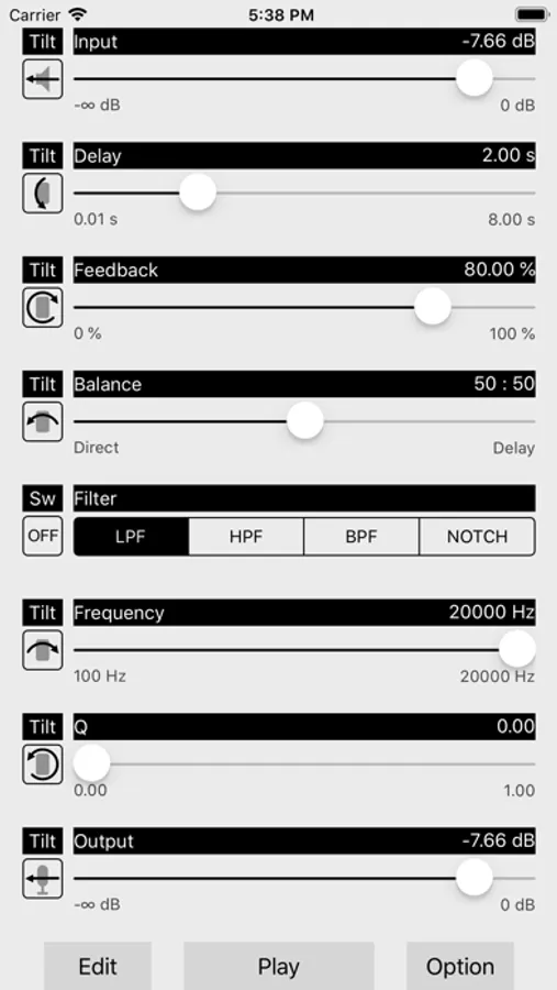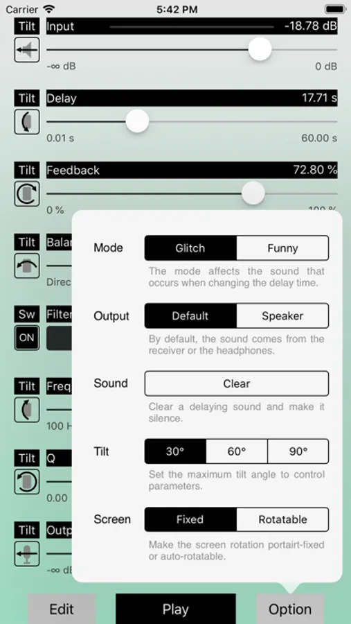 [[ ATTENTIONS ]] Due to a latency of an audio input and output, the actual delaying time will be slightly longer than the setting. A natural feedback through the air may happen because the microphone and speaker are placed closely on the iPhone. Distorted sounds or harsh grating noises will be produced depending of the setting of parameters. It would be better NOT to use this application if you cannot stand noisy sounds.
