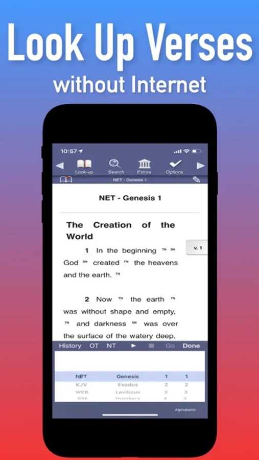 ◆ Bookmarks - Click the verse number and that verse is bookmarked for quick access later.