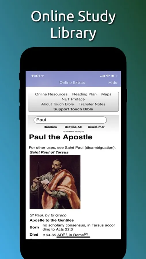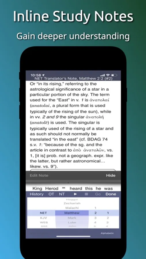 •Touch Bible includes 10,000+ inline study notes in the New English Translation for free. Find more study materials under the Extra button.