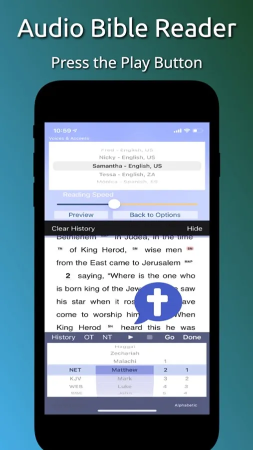◆ Voice Over - Touch Bible has features for Voice Over to read the Bible to the visually impaired.