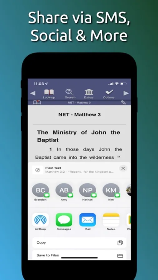 •Share verses and notes many more ways using the "Share" button: Text, email, Airdrop and more!