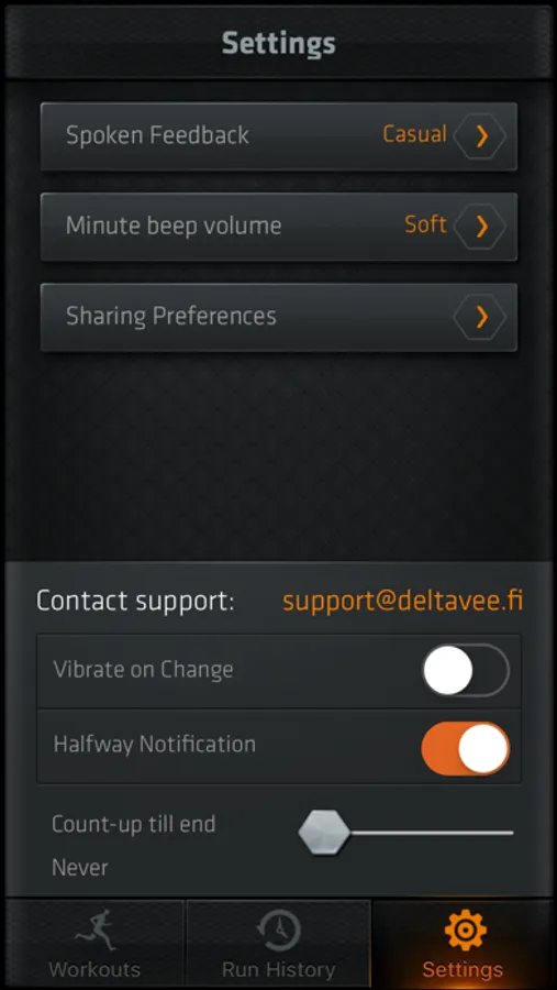 * Spoken feedback to notify the user when to switch from walking to running (or 8 other types)