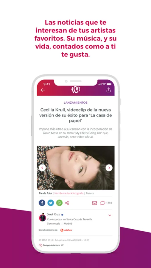 • Noticias: Con todo lo que te interesa, las tendencias del momento, las novedades y entrevistas sobre tus artistas favoritos, tus canciones preferidas.... Todo para que estés al día de la música que más suena.