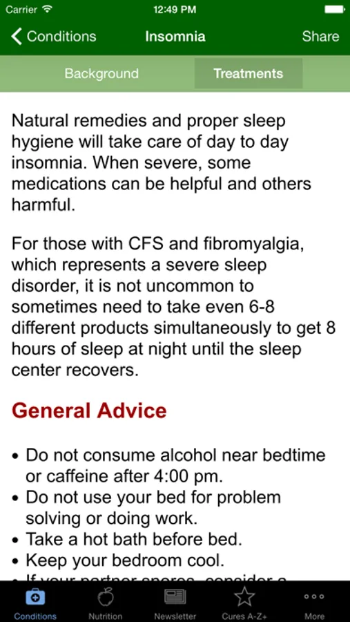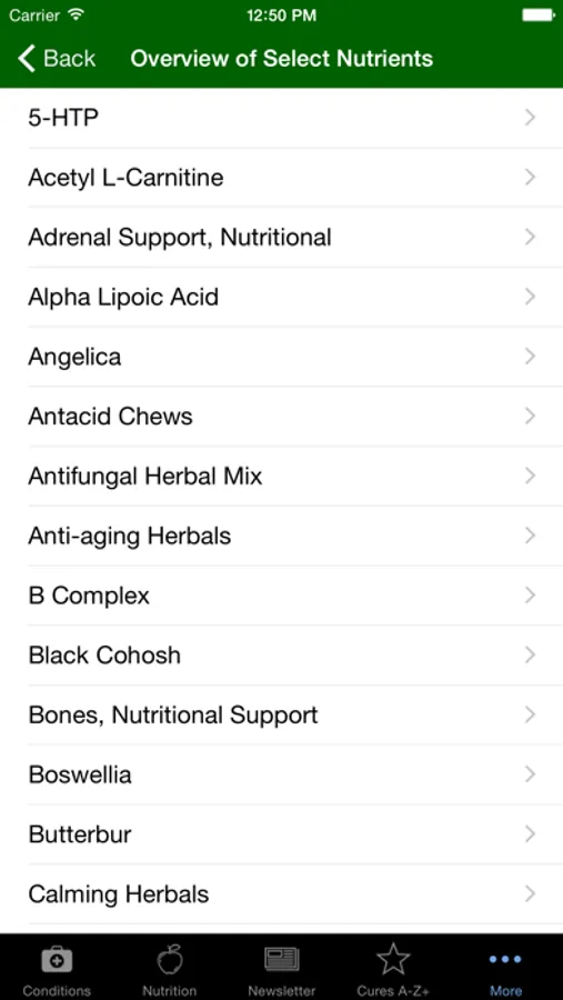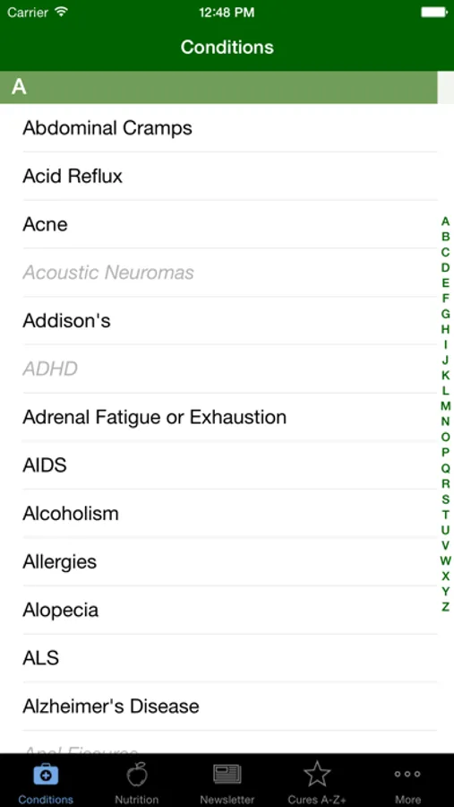 • Conditions A-Z: An index of hundreds of health conditions and recommended treatments using the best of both natural and prescriptions therapies.
