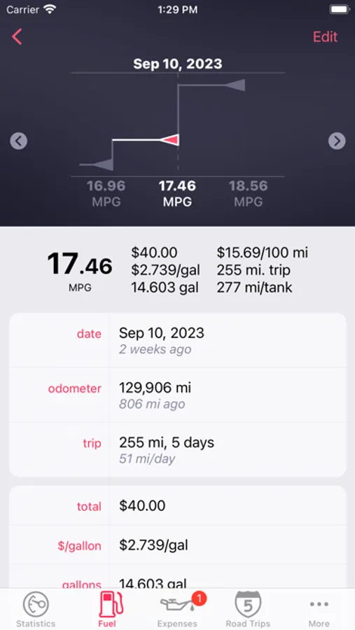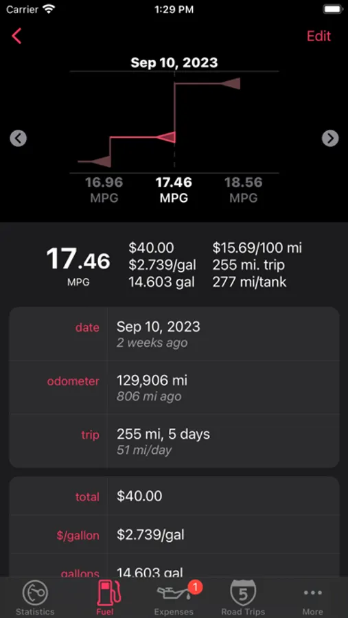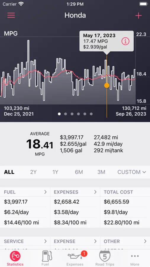 "The part we like the most is the cool graph that shows fuel costs and average mpg over time. And it lets you look at the cost per day to keep those wheels turning."