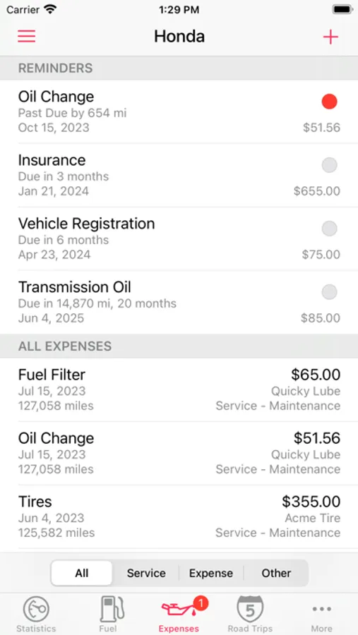 • Show you how much money you spend on your car.