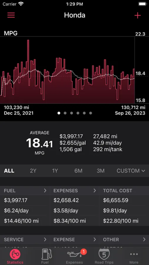 Road Trip is the fastest and easiest app for tracking of your car’s fuel economy, maintenance history, and expenses.