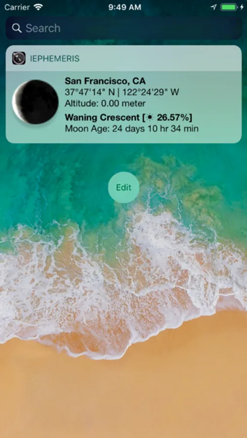 The widget allows you to have a quick look at moon phase and current coordinates (location, latitude, longitude and altitude).