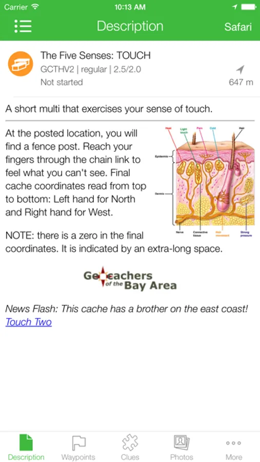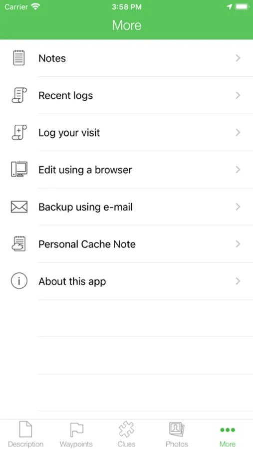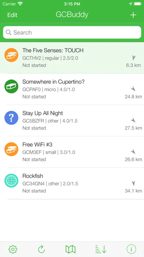 - Send an e-mail with all the information of a cache as backup or to a friend