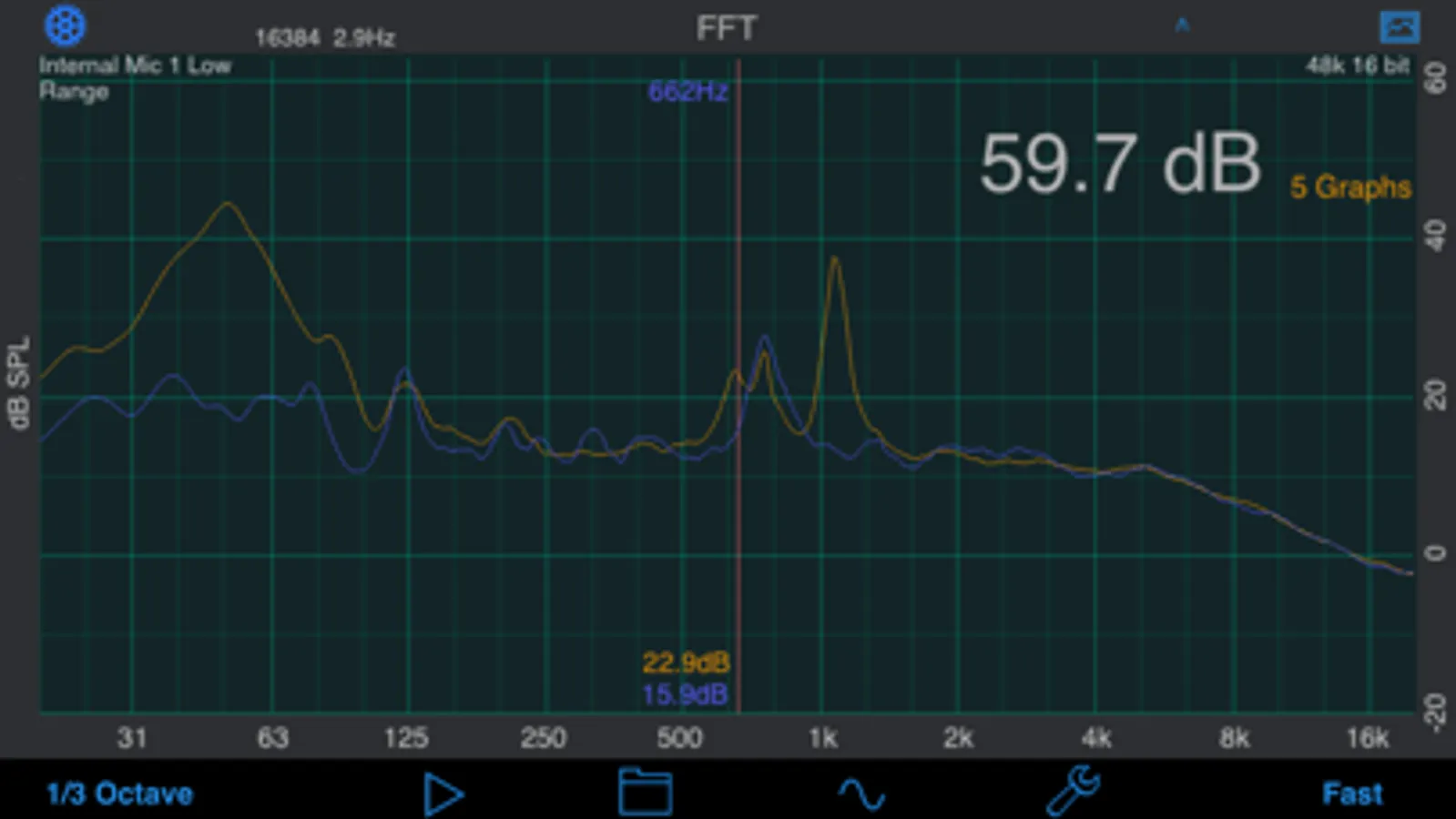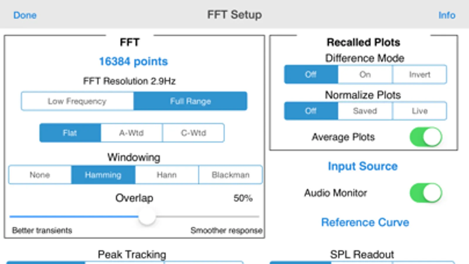 FFT comes calibrated for the typical iPad, iPod touch, or iPhone microphone, and you can adjust the calibration. Microphone compensation files tailored to each iOS device are automatically applied.