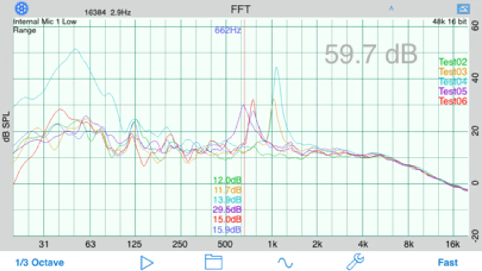 Set the FFT size from 4096 to 32k points (depending on iOS device) , or select Equal Points Per Octave mode, for high-resolution analysis, even at low frequencies.