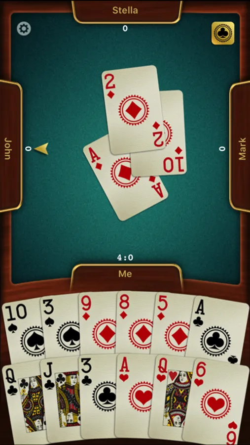 A player leads the first card. Each player must follow the suit led, if he can. If not, he should play the trump, or any suit if he has no trump. The player who has played the card with the highest value ( the trump card or the card of the suit led, if no trump was played) wins the trick. That player then leads to the next trick. Continue until all tricks have been played and won.