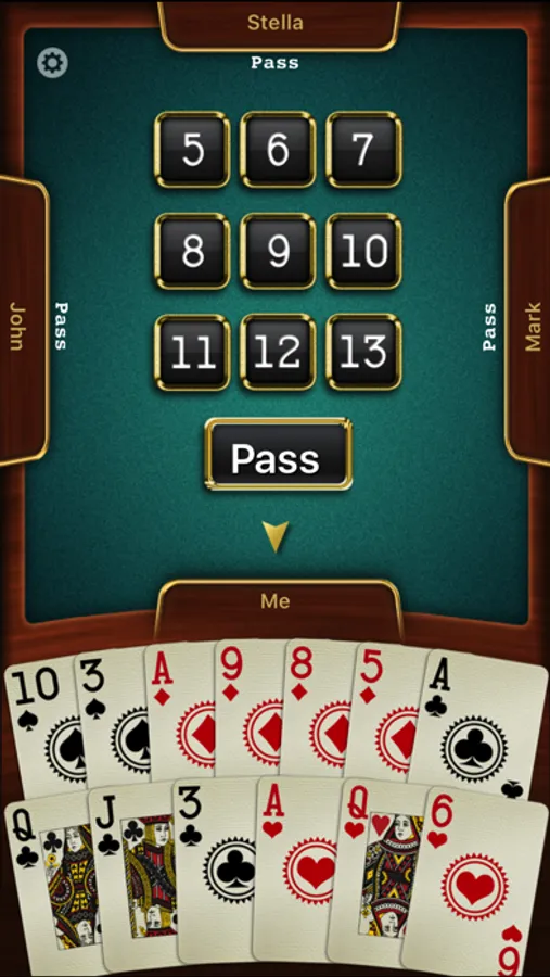 In the auction game a player offering higher bid wins the auction. He has to take bid number of tricks or more. Other players have to win at least one trick.
