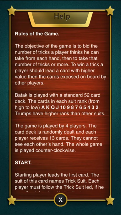 Batak is a variant of popular trick-taking card game Spades. Batak is also known by many other names, including Oh Hell!, Blackout, Nomination Whist, Elevator (l'Ascenseur in France), Boerenbridge or 10 op en neer in the Netherlands, German Bridge in Hong Kong.