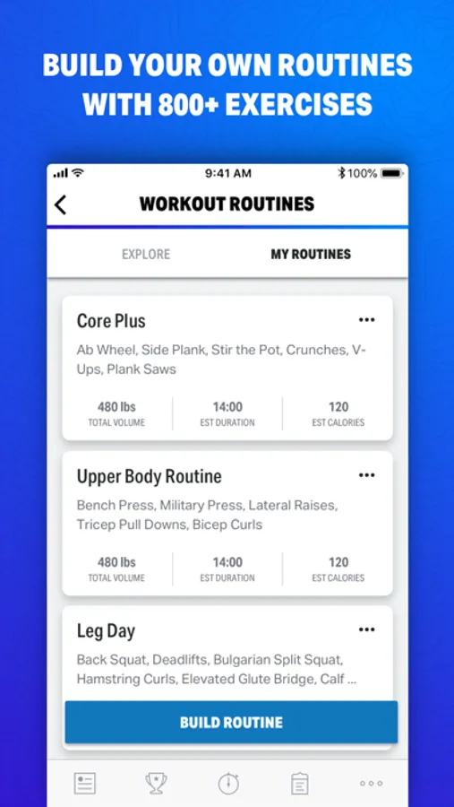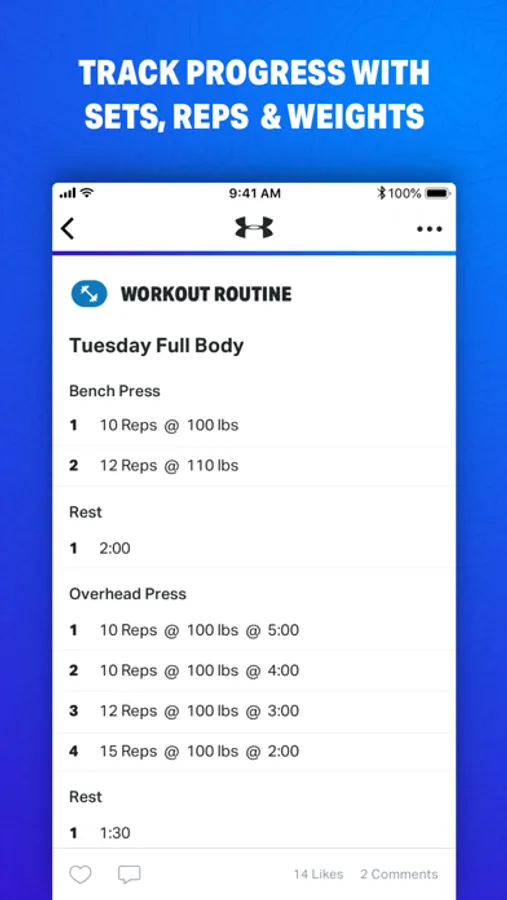 Whether you're new to the weight room, or a seasoned weightlifter, you'll find the features and tools needed to stay on track and motivated to hit your goals. Get personalized workout routines written by the Under Armour Training Team. Track your exercise progress over time. Share and discover new workout routines performed by a community of over 60 million fitness enthusiasts.