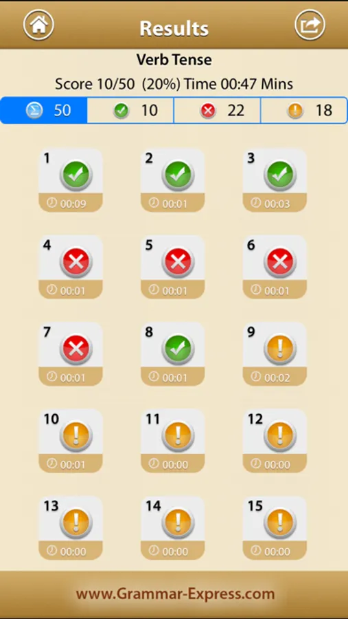 You can study the grammar rules by topic. All questions are sorted by topic. It also tells you the areas that each topic covers.