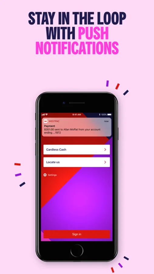 • Cardless Cash - withdraw up to $1,000 without your debit card from any Westpac, St.George, Bank of Melbourne or BankSA ATM