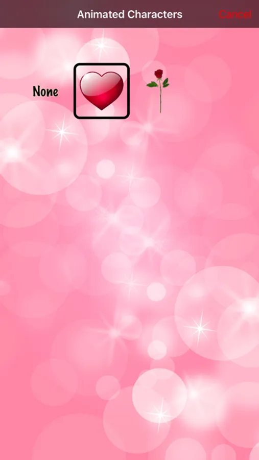 • Animated characters include a heart and a rose.