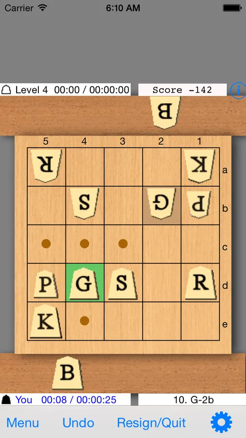 5x5 Shogi (MiniShogi) is a variant of Shogi (Japanese chess).