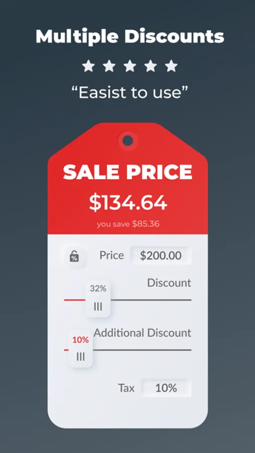 - Quickly calculate the final sale price with multiple discounts and sales tax