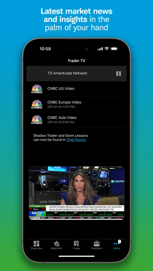 • Live stream programming from our media affiliate, TD Ameritrade Network, and CNBC (U.S., Asia, and Europe), and get in-depth company profiles from Trefis to uncover key insights.