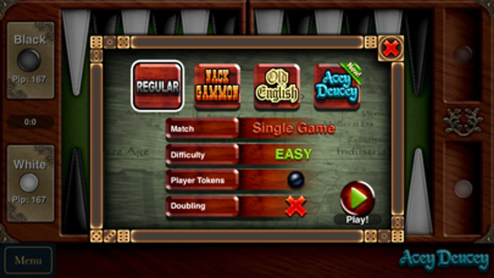 Single Player- Prove you're the King against Backgammon's Easy, Medium, or Hard difficulties!