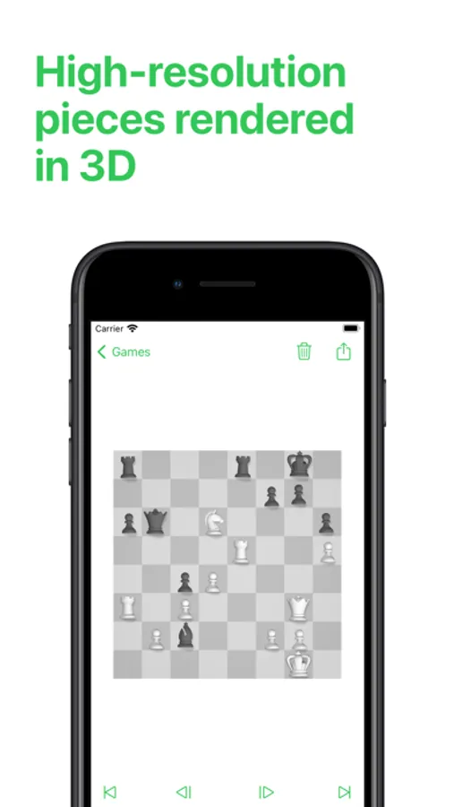 - CUSTOM PIECE DESIGN: Beautiful chess set designed specifically for Deep Green and rendered at high resolution in both outline and 3D throughout the app.