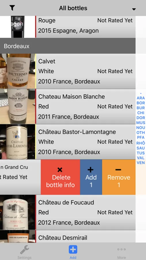 For each bottle, you can add, remove or edit all characteristics. You can quickly add a new vintage from an existing bottle using the shortcut.