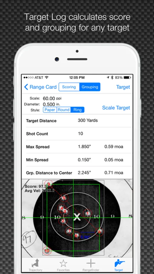 - Target Log: Keep a journal of all your hunts, shoots, adjustments, points of impact, and scores. Includes group calculator, integrated score log, multiple target types, and camera and GPS support. Load as a zero atmosphere later in calculations. Generate cold barrel and scoring reports for each rifle.