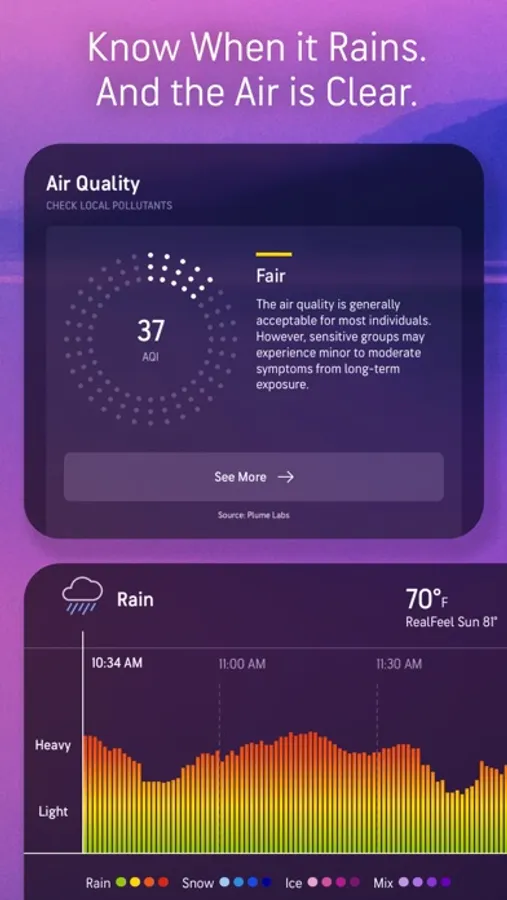 - RealFeel® & RealFeel Shade Temperature™ technology - helping you get a better sense of how the weather actually feels