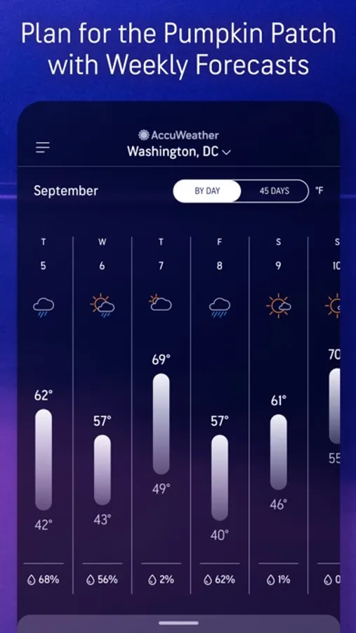 - Go beyond today’s weather and look 45 days ahead to ensure that you’re prepared for any weather