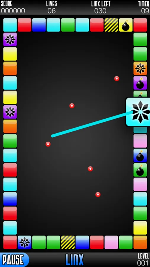 Linx is a fun, addictive game that gets fast and frantic very quickly! Draw "linx" between squares of the same colour/style. Draw the required amount for that level and you advance to the next.