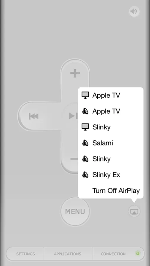 - Click-and-hold works just like on the physical remote in applications; for example, holding the right button fast-forwards, while a single click is ‘next’. This is a feature no other iPhone remote control I know of does properly!
