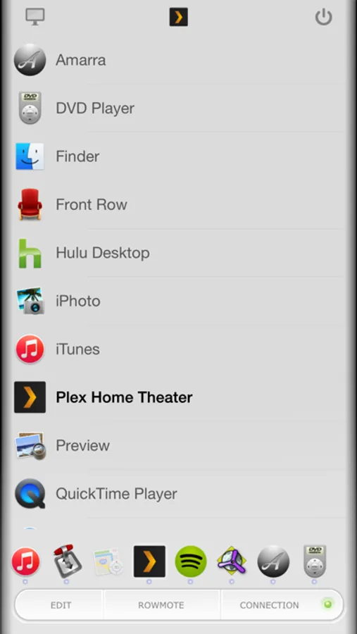 Enter Rowmote! Rowmote is like your Mac’s remote control, but over the wireless network and even better! By tapping the Apps button, you get bonus abilities, switching between controlled programs, toggling the iTunes Visualizer, and more. Rowmote will even wake sleeping Macs.
