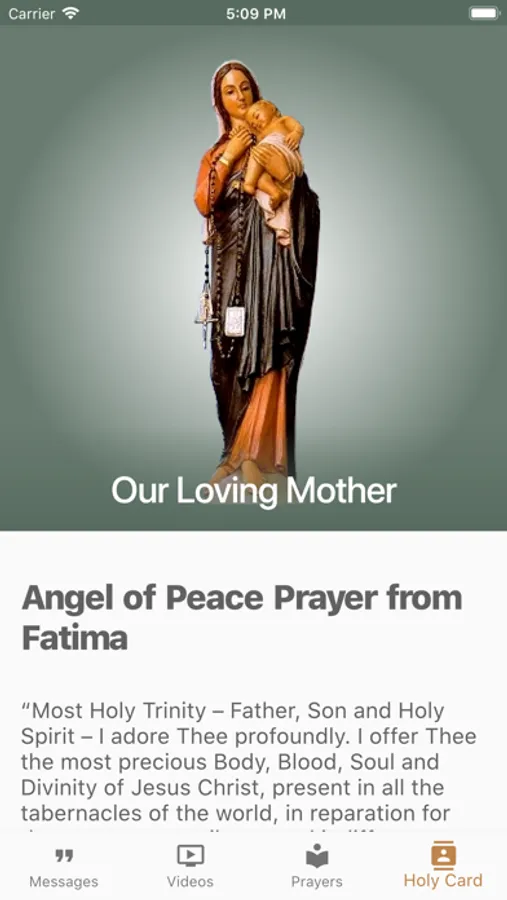 • Holy Card - Picture of Our Loving Mother containing the Angel of Peace prayer.