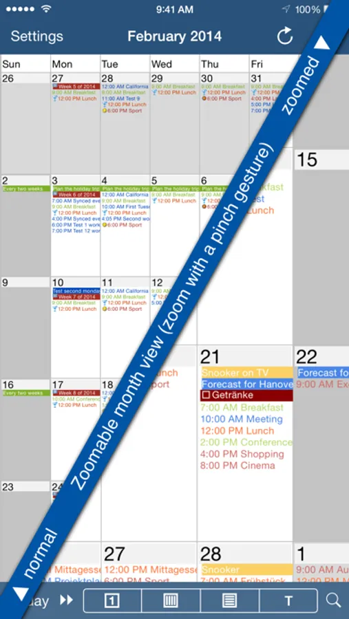 If you think the font is too small and hard to read, you can increase the font size of all calendar views in the settings under "Settings", "Display and Use".