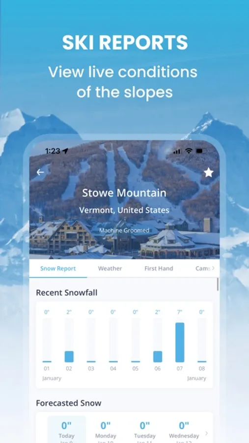 -- Access to snow reports from more than 2,000 mountains, including Park City, Telluride, Jackson Hole, Big Bear, Keystone, Steamboat, Beaver Creek, Breckenridge, Killington, Copper, Vail, Winter Park, Big Sky, Arapahoe Basin, Whistler Blackcomb, Mammoth and more.