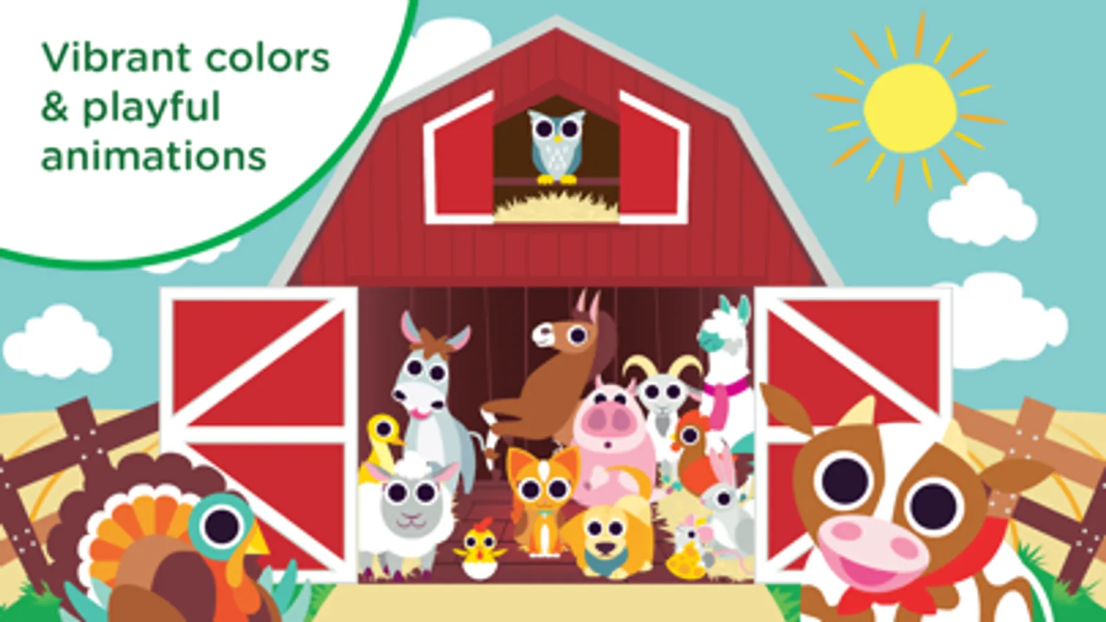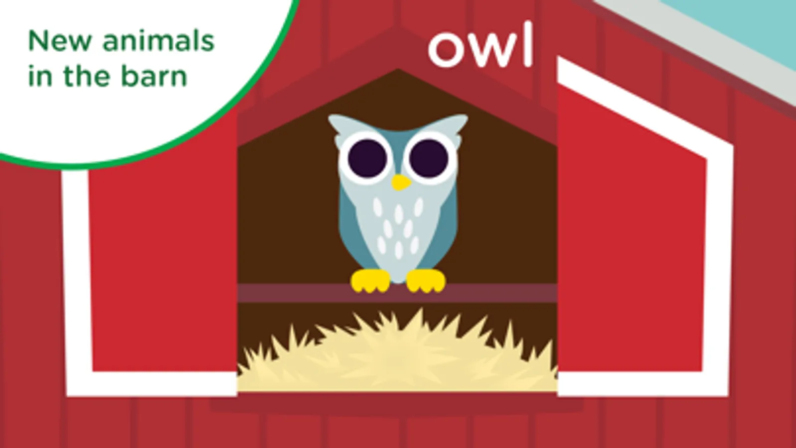Work with your child to learn the names of animals and hear the sounds they make. Younger children will love opening the barn doors to find new animal animations, as they learn about cause and effect and become familiar with animal names and sounds. Older children will enjoy guessing animals by sound, then seeing the animal names, which helps develop early literacy skills.