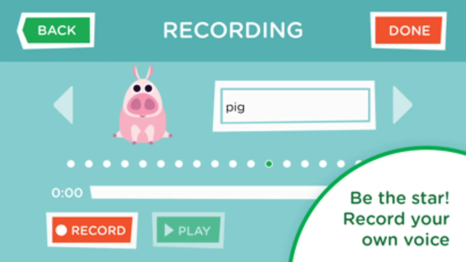—Record your own voice: We added this feature so parents, children, and visiting relatives and friends can capture their own voices and star in Peekaboo Barn. Now you can record the animal names in your native language--or grandma's voice, or grandpa's--and, if you're recording a new language, you can save the appropriate written version too, and both will show up the next time you play. (Please note, we can only support the writing systems that are supported by your device.)